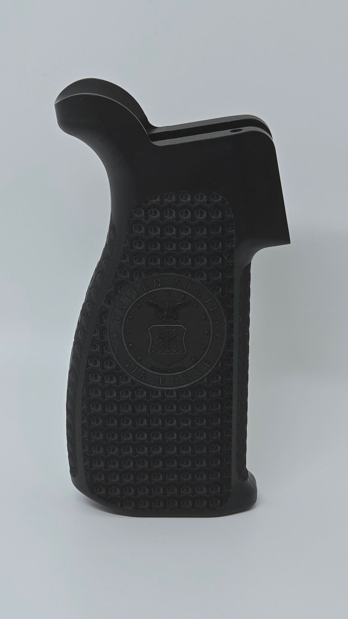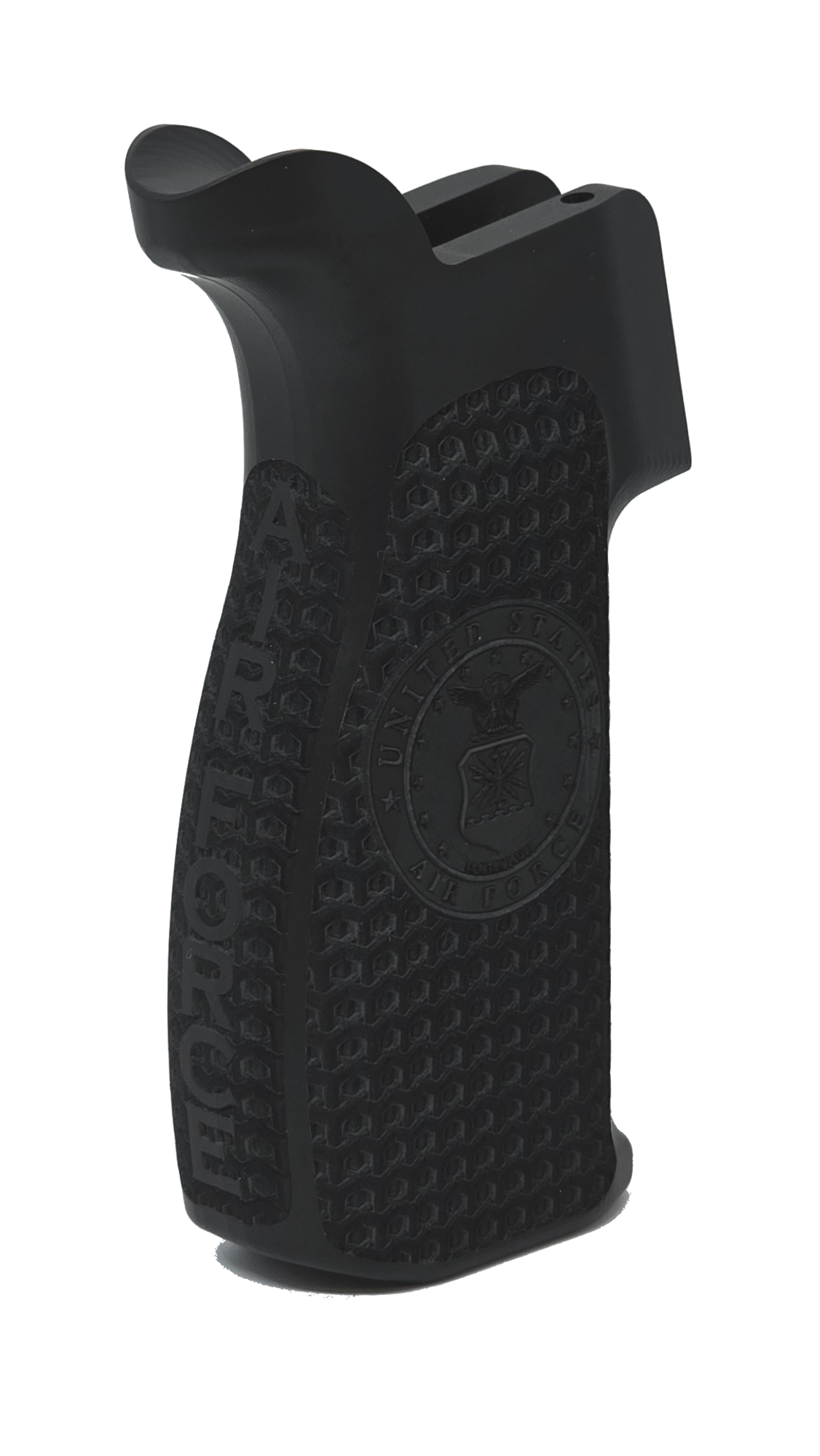 Stand out from the crowd while honoring service and sacrifice. This heavy duty grip for the AR platform comes with precisely engraved U.S. Air Force insignia on both sides, celebrating the bravery and commitment of our military. The textured detailing not only enhances grip stability but also showcases a bespoke design that pays tribute to those who protect our freedom.