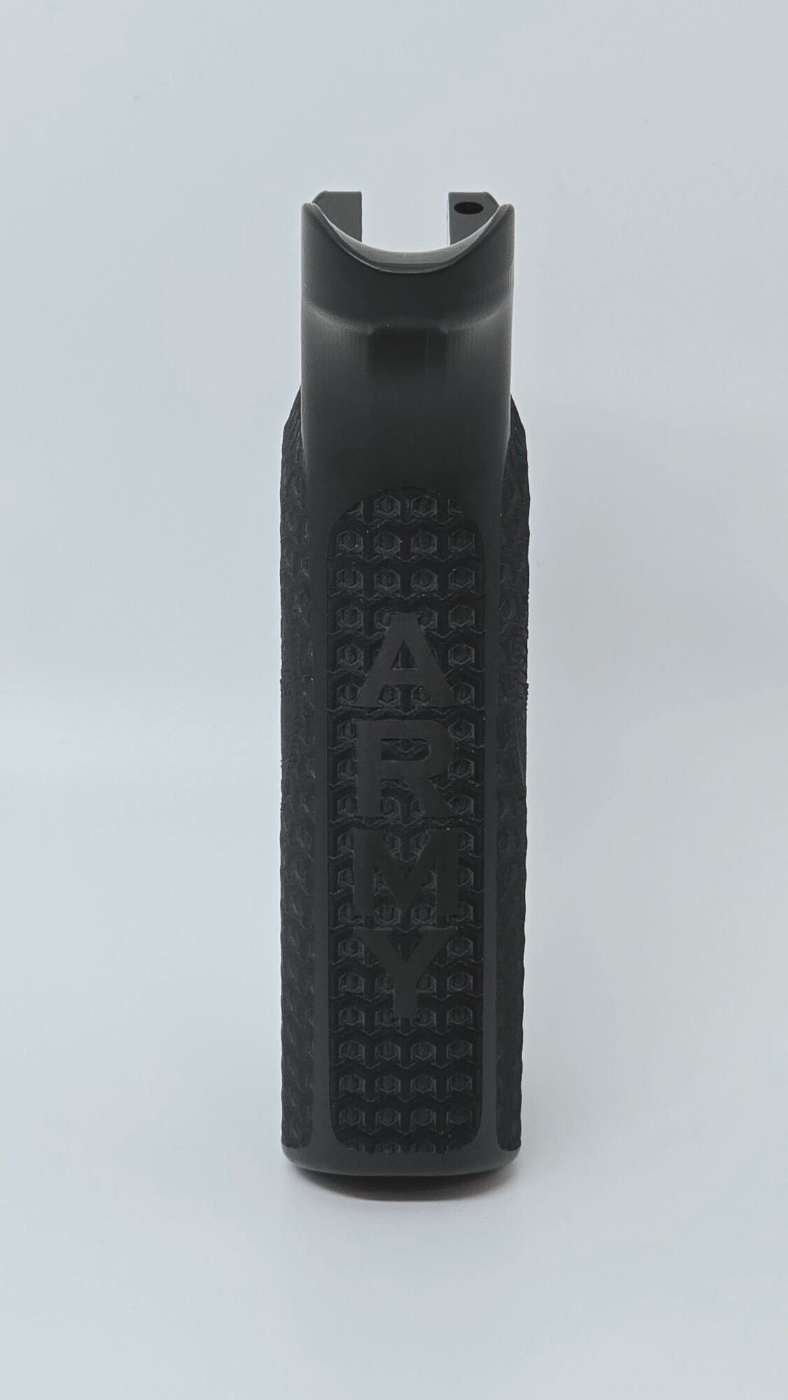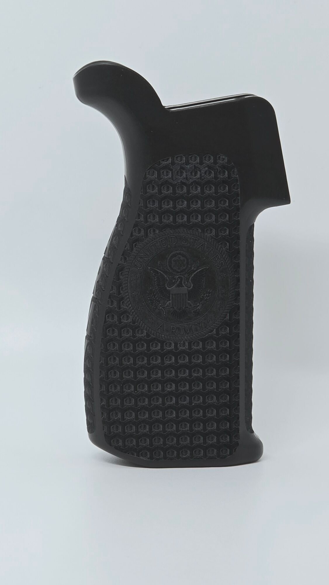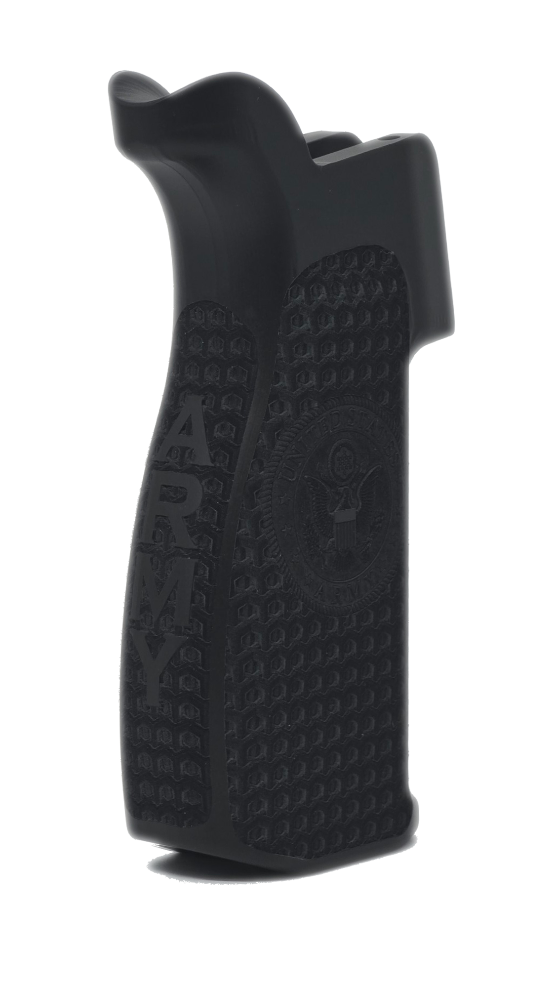 Stand out from the crowd while honoring service and sacrifice. This heavy duty grip for the AR platform comes with precisely engraved U.S. Army insignia on both sides, celebrating the bravery and commitment of our military. The textured detailing not only enhances grip stability but also showcases a bespoke design that pays tribute to those who protect our freedom.