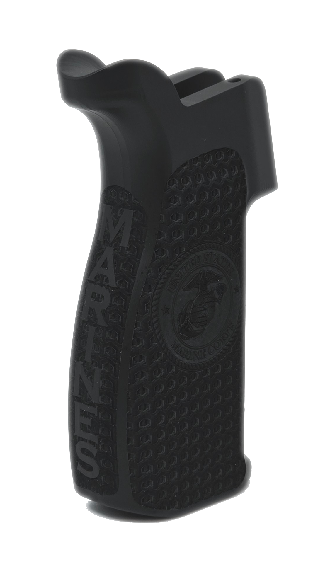 Stand out from the crowd while honoring service and sacrifice. This heavy duty grip for the AR platform comes with precisely engraved U.S. Marines insignia on both sides, celebrating the bravery and commitment of our military. The textured detailing not only enhances grip stability but also showcases a bespoke design that pays tribute to those who protect our freedom.